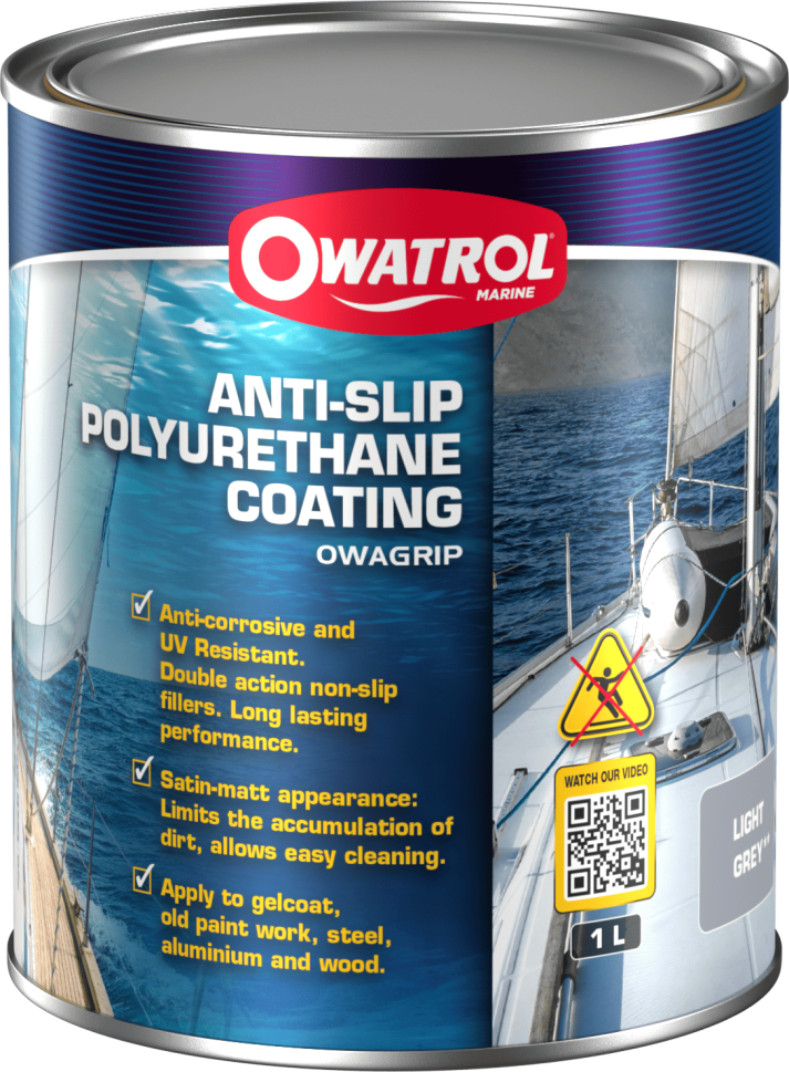 OWAGRIP е морска противоплъзгаща полиуретанова боя, предназначена за палубите на вашите лодки. Нейната ултра-ефективна формула осигурява отлична устойчивост на пешеходен трафик и сурови метеорологични условия (дъжд, UV лъчи, вятър). Нейните противоплъзгащи свойства са идеално подходящи за вашите палуби.
