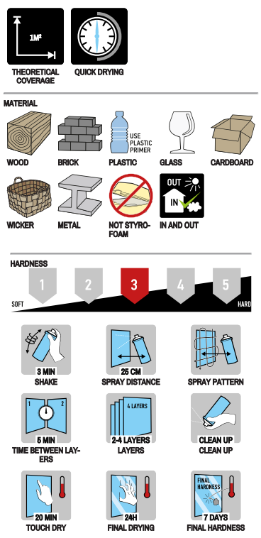 Тази многофункционална алкидна боя с кратко време за съхнене е подходяща за хоби употреба. Използвайте я за боядисване на дърво, камък, метал, стъкло и повечето пластмасови повърхности. Подходяща е както за вътрешна, така и за външна употреба.