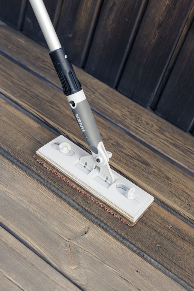 Нашият 2-в-1 инструмент за тераси има както шкурка, така и подложка за нанасяне, които се прикрепят към един и същ инструмент и лесно се превключват между тях. Подложката за нанасяне покрива две дъски едновременно, за да можете да работите по-ефективно, а също така помага да се осигури тънък, равномерен слой без петна. Третирането на терасата ви никога не е било по-лесно! Прикрепете към някой от нашите удължителни пръти за най-добър краен резултат. Шкурката не е включена и трябва да се закупи отделно.