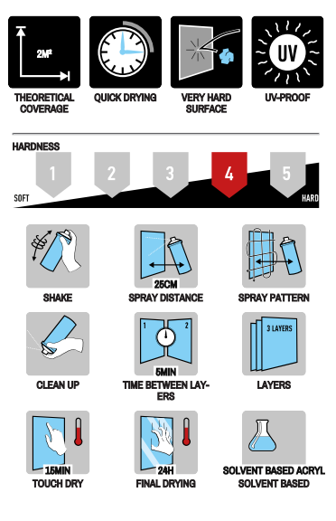 Осигурете защита на зоната в радиус поне 5 метра около боядисвания обект. Частиците от боята са леки и могат да се разпространят чрез вентилацията на големи разстояния.
