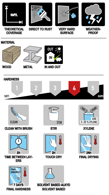 Подходяща и за предварително боядисани железни и стоманени повърхности, както и за дърво.