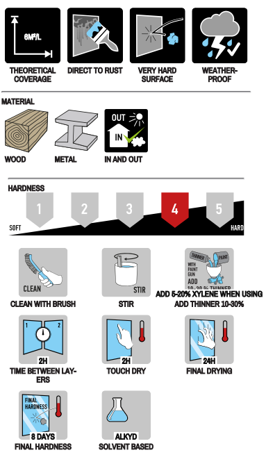 Разреждане и почистване: с Maston Hammer Thinner или Maston Xylene (5–20% при ползване на пистолет).